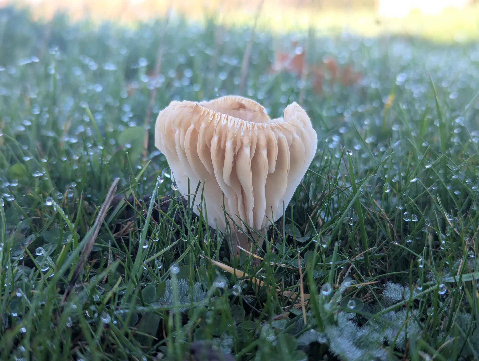 In the grassland to the south of the Hall – wonderfully sculpted meadow waxcaps (Cuphophyllus pratensis).