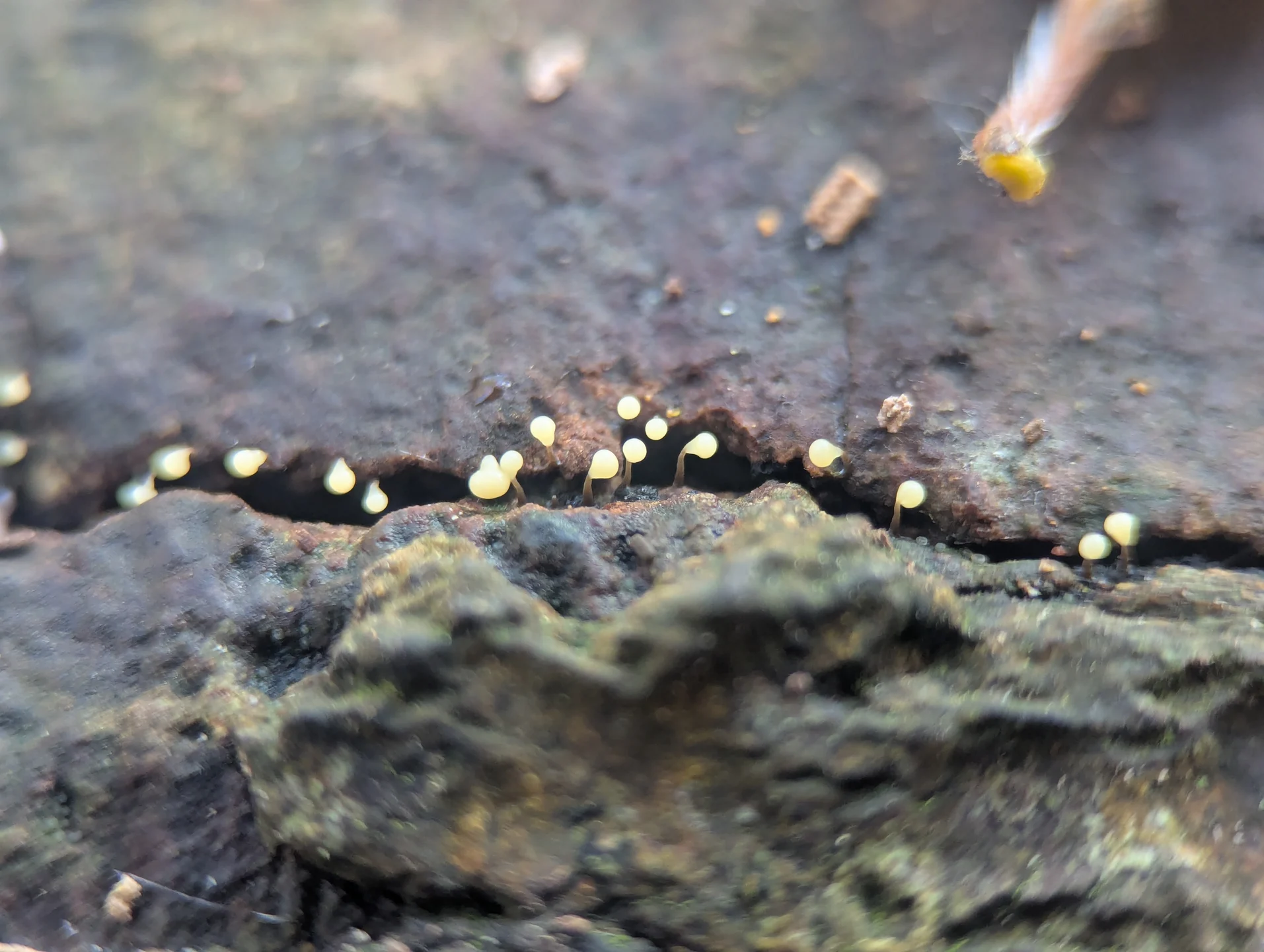 These unidentified sporangia were quite wonderful with their luminous pale cream sporotheca.