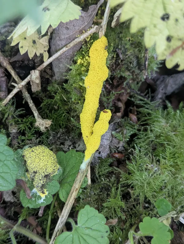 Along the path to Basecamp, three aethalia – I’m always struck by the almost-glowing, vibrant yellow of this slime mould at the point immediately after its transformation from plasmodium to aethalium.