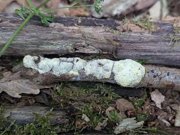 This aethalium, also at the Basecamp loop, is taking the shape of the leaf along the top.