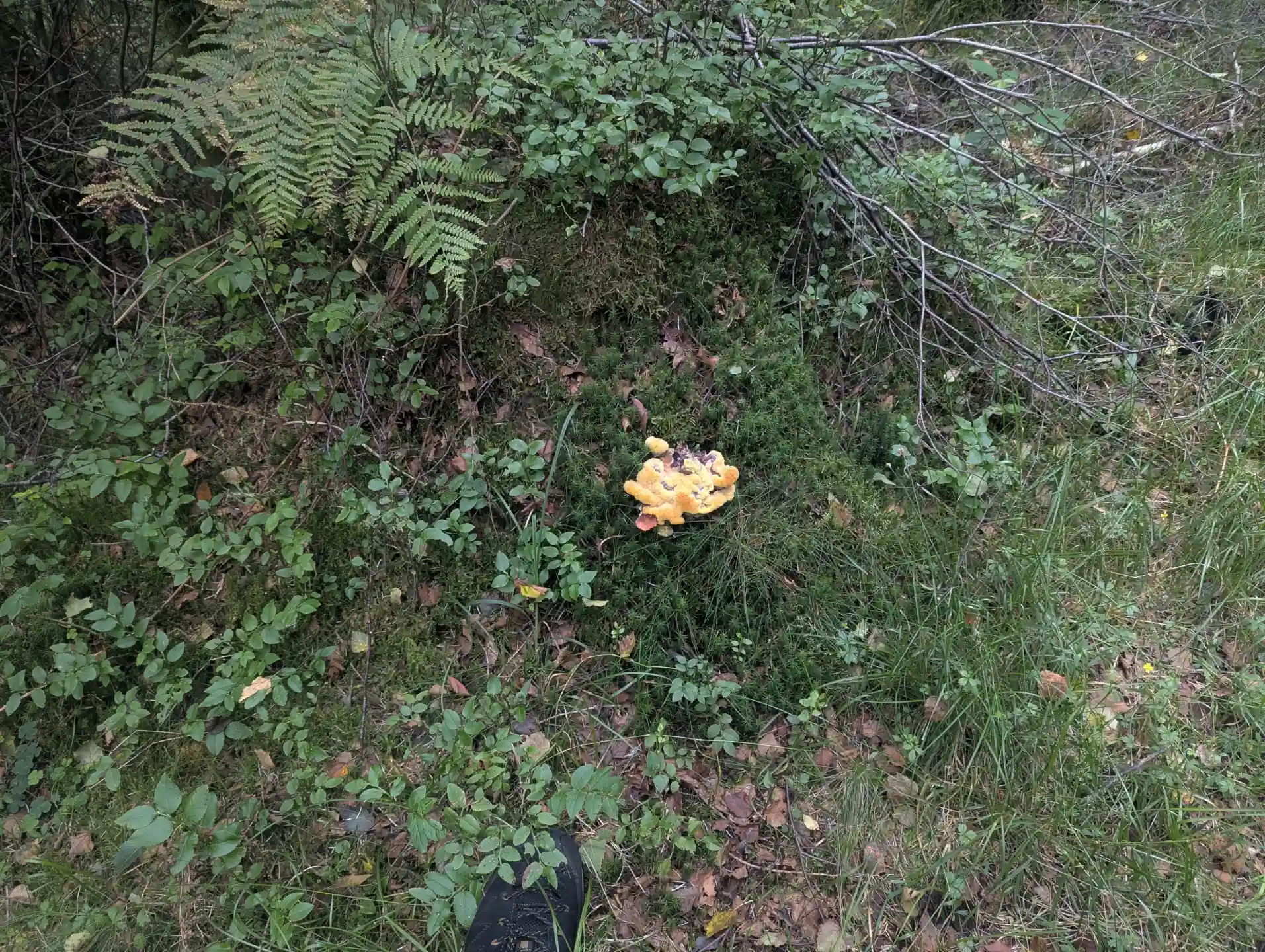 Further along the path, heading towards Grizedale, I noticed a patch of possible false chanterelles — Hygrophoropsis aurantiaca.